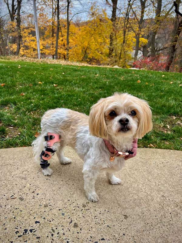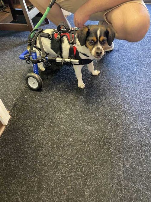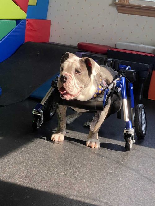 At Alpha Animal Rehab & Fitness, we understand that your furry friend deserves the best care and support, especially when dealing with mobility issues. Our certified canine rehab specialists have completed the Walkin’ Pets educational series on the Walkin’ Wheels wheelchair, making them experts in assembling, fitting, adjusting, and properly utilizing this mobility device. We’re proud to partner with industry leaders such as Walkin’ Pets, My Pet’s Brace, Wimba, and 3D Pets to provide top-of-the-line carts, braces, and harnesses customized for each pet.