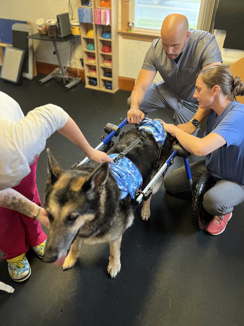 At Alpha Animal Rehab & Fitness, we handle everything in-house. Our dedicated team is trained to provide expert fitting and fixing services for your pet’s cart, brace, or harness. We understand that every pet is unique, and a one-size-fits-all approach won’t work. That’s why we ensure a custom fit that’s tailored to your pet’s specific needs. Our experienced professionals work closely with you to determine the best solution for your pet’s mobility challenges, taking the time to understand your pet’s condition and assess their needs to ensure a comfortable, effective fit.